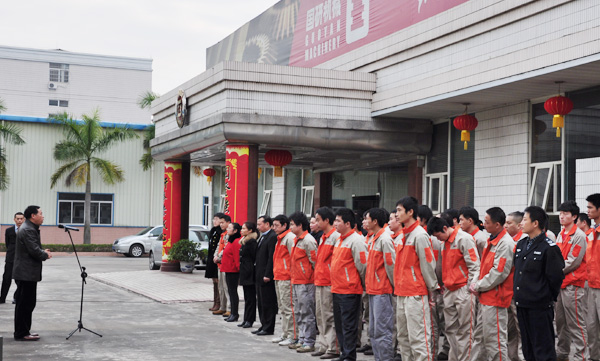 2014年2月21日下午,阳光灿烂、司旗飘扬,广州市「B体育」机械设备制造有限公司在公司广场召开了2013年度表彰大会。会上公司领导总结了2013年的工作并对2014年工作进行了安排部署,对13名表现优异,业绩突出的“年度优秀员工”进行了表彰奖励。