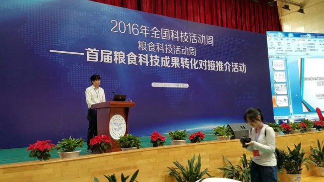 5月17~18日,在武汉轻工大学举行的由国家粮食局、中国科协主办的2016年全国粮食科技活动周上,我司研发的全自动直条米粉生产线被列为全国首届粮食科技成果转化对接推介重点项目。公司总经理助理王起在推介活动会上作了发言。