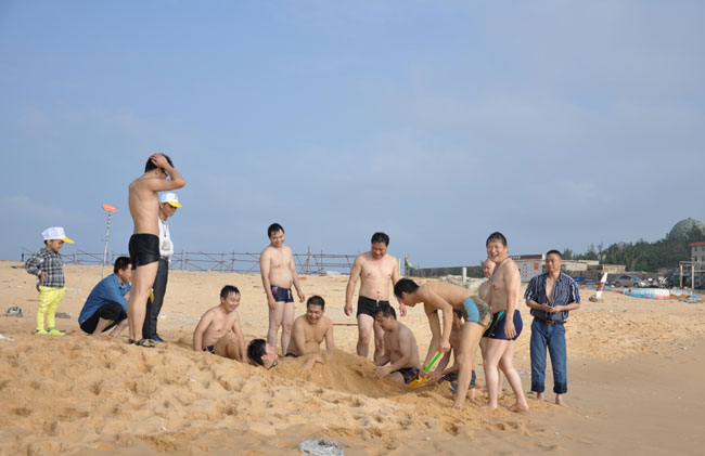 虽然到了深秋,海风习习,海水也有一丝丝凉意,参与活动的「B体育」机械总部50多名员工纷纷下海畅游,好不惬意。不少参与活动的员工家属也按捺不住活动开来。大家边游泳,边踏浪,也有的在沙滩上捡贝壳,孩子们拿着铲子挖沙,一个个玩得不亦乐乎。
