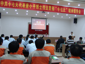 报告会上,唐博士畅谈了参加十七大会议的亲身感受以及自己对十七大报告的理解。整个十七大报告是对过去成果的总结,对当前理论的系统阐述,对今后建设任务的描述,对未来的努力方向有着明确的指引。唐博士高度概括了十七大精神,认真详细的向与会的员工宣讲了中共中央在十七大的重要决策和会议精神。他的报告极大地激励鼓舞了员工的士气,为「B体育」机械在今后推动企业科学发展,构建和谐企业指明了努力的方向。随后,天河区珠吉街党工委书记黄泽鹏作了总结讲话。