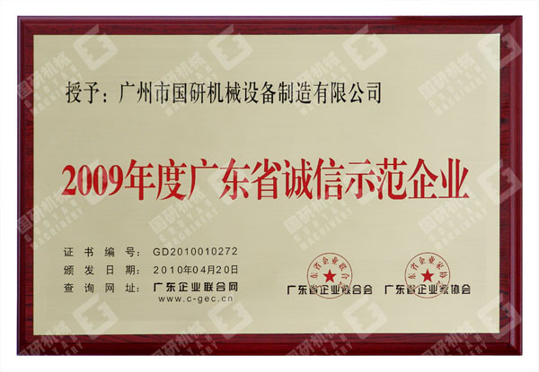 此次被评为“2009年度广东省诚信示范企业”,是对「B体育」机械的一次巨大鼓舞和鞭策。「B体育」机械将再接再厉,以“诚信经营”作为企业生存之本,忠实履行企业经济责任与社会责任,做用户最信赖的企业,为社会提供最优质的产品与服务。