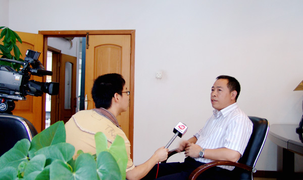 广州电视台记者正在采访公司董事长王声位