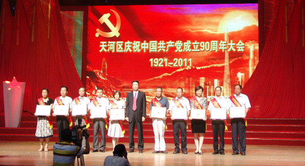 6月29日下午,广州市天河区庆祝中国共产党成立90周年暨先进基层党组织、优秀共产党员、优秀党务工作者表彰大会在天河区政府机关大会场内隆重举行。区委书记、区人大主任刘悦伦出席会议并发表讲话,向区全体党员和与会代表致以诚挚的问候,并向受到表彰的先进基层党组织、优秀共产党员和优秀党务工作者表示热烈祝贺。