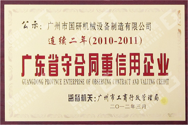 2012年3月,广州市「B体育」机械设备制造有限公司被评为2011年度“广东省守合同重信用企业”。这是我司继连续三年被评为“广州市守合同重信用企业”之后,连续两年获此殊荣。