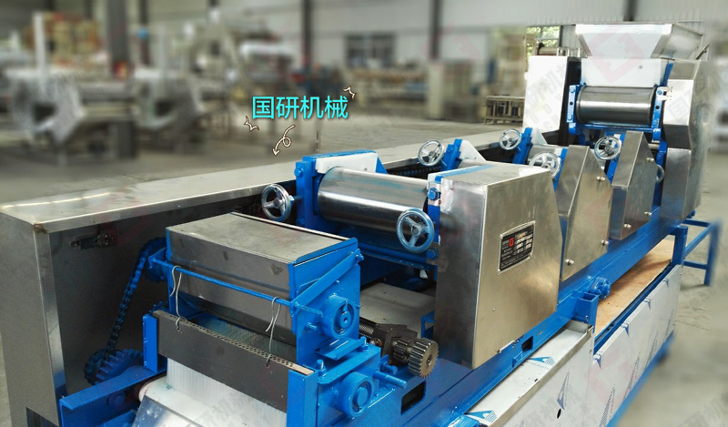 4)采用大直径实心压辊,光洁度好,压延力高,面片韧性好,面条更劲道。